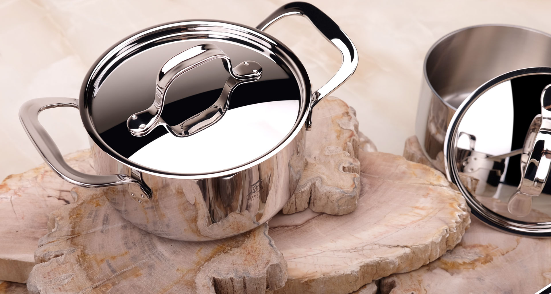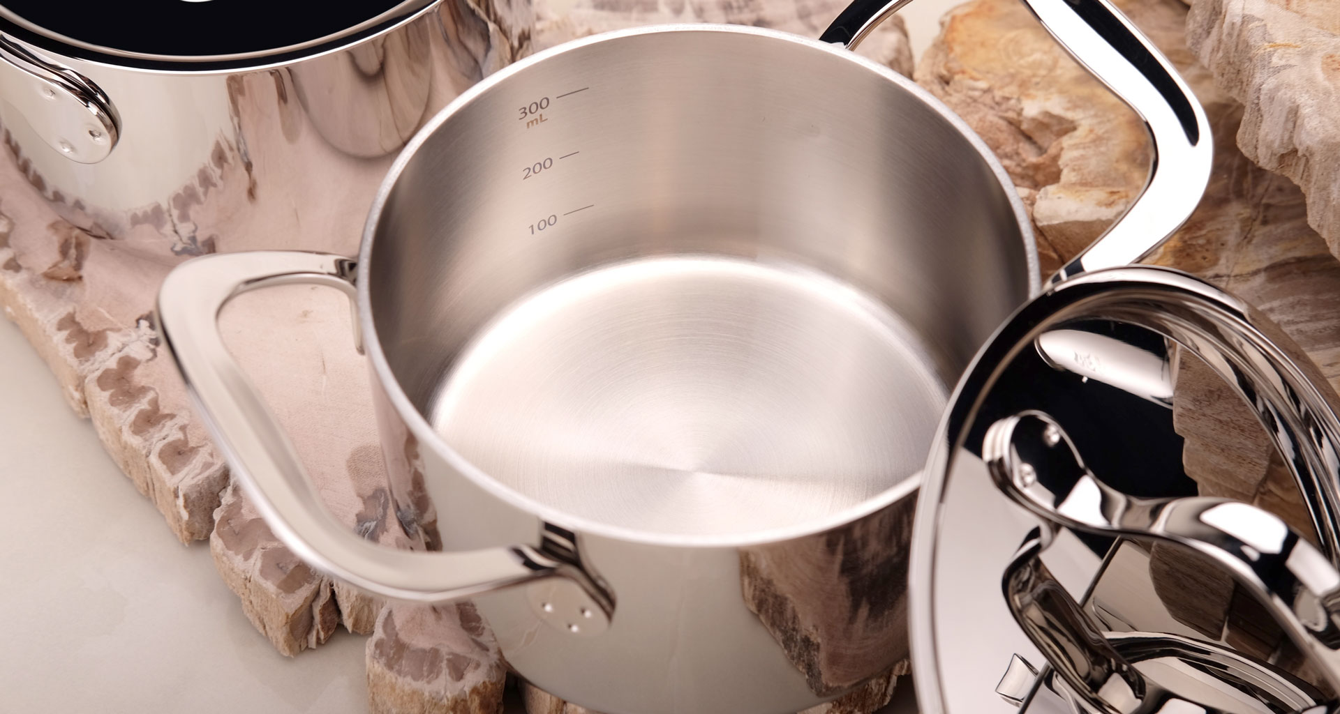 この新技術により、自宅でヘルシー調理を行うことができます。ステンレスクラッド材は調理器具本体の側面まで均等に熱を伝導し、ホットスポットの発生を防ぎます。